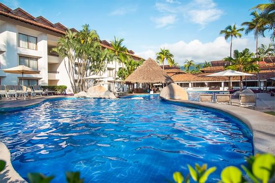 Relájate en piscinas climatizadas con un bar junto a la piscina, música, servicio de toallas y una segura piscina infantil. ¡Disfruta de bocadillos todo el día!